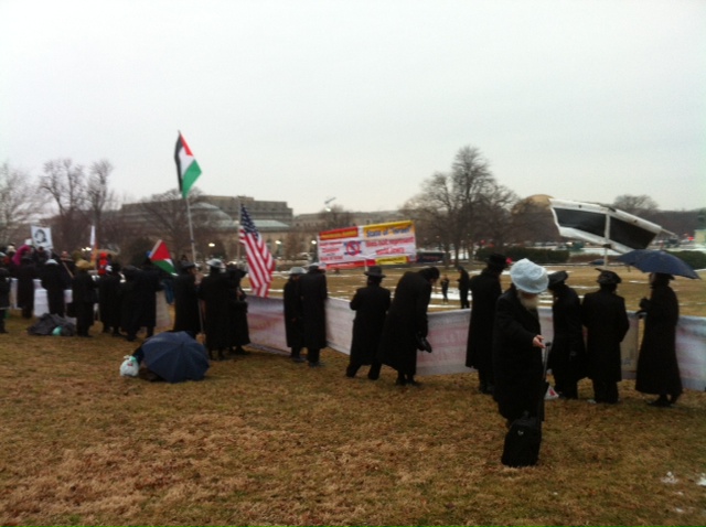 Orthodox Jews with Palestine Flags Joined the Anti-Netanyahu Protest in Washington on March 3, 2015